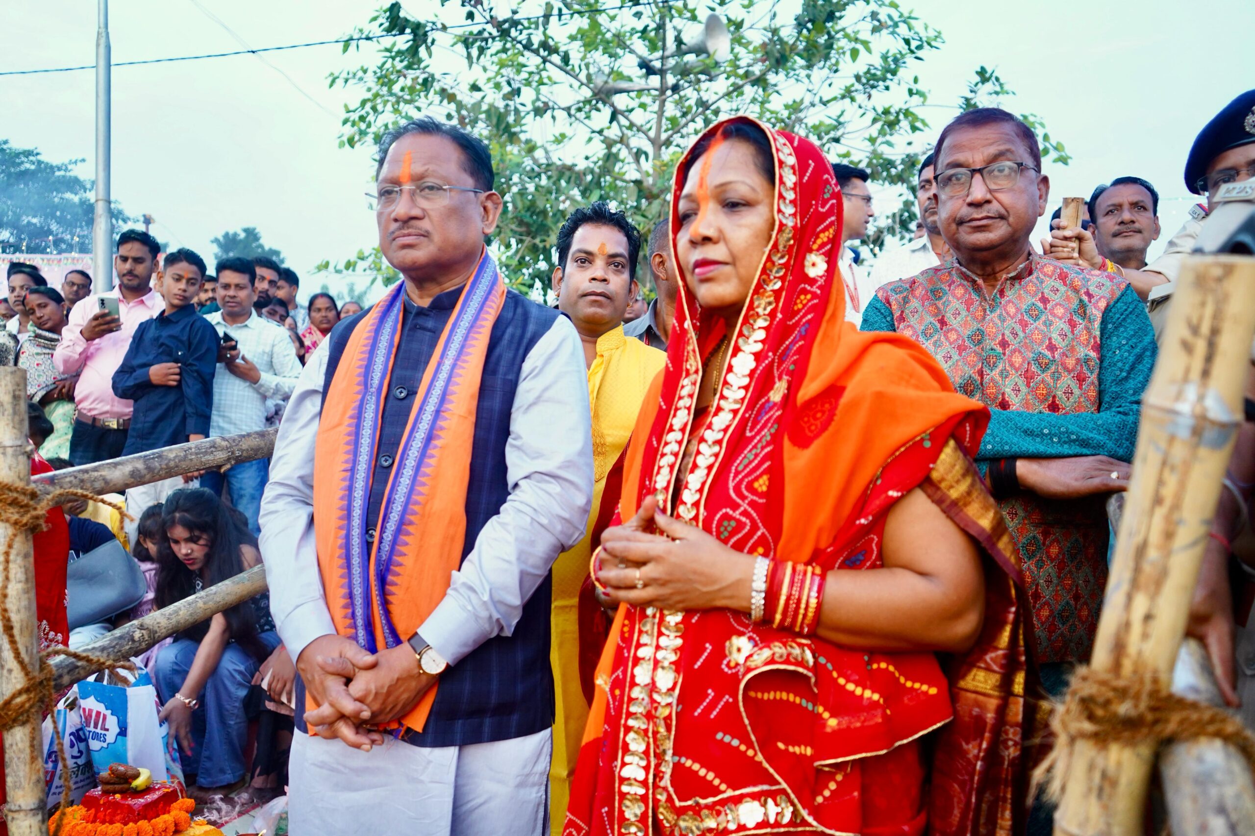 मुख्यमंत्री विष्णुदेव साय और उनकी धर्मपत्नी ने कुनकुरी छठ घाट में उगते सूर्य को दिया अर्घ्य, प्रदेश के सुख समृद्धि और खुशहाली की कामना की….