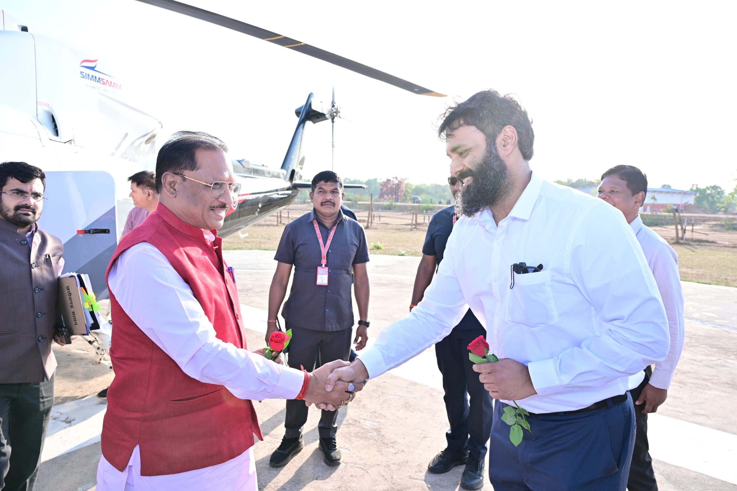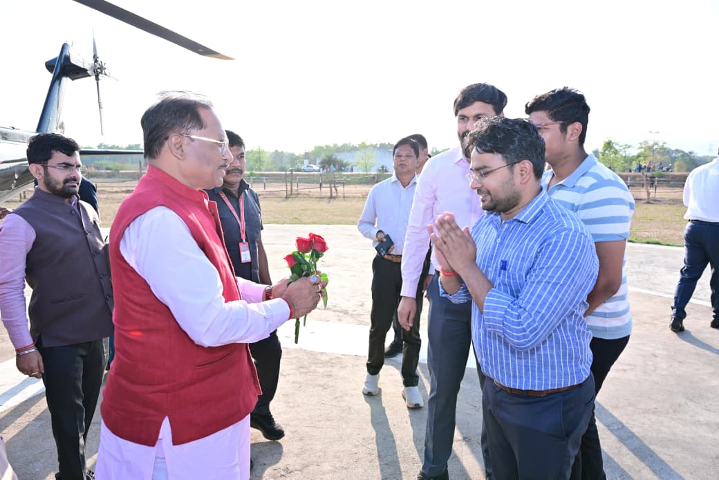 मुख्यमंत्री के हेलीकॉप्टर के उतरते ही मौजूद लोगों ने पुष्पगुच्छ भेंट कर उनका अभिनंदन किया। इस दौरान जिला प्रशासन के वरिष्ठ अधिकारियों में कलेक्टर श्री रोहित व्यास, पुलिस अधीक्षक (एसएसपी) श्री लाल उमेद सिंह, जिला पंचायत के मुख्य कार्यपालन अधिकारी श्री अभिषेक कुमार तथा वनमंडलाधिकारी (डीएफओ) श्री शशिकुमार सहित अन्य अधिकारियों ने मुख्यमंत्री का स्वागत किया।